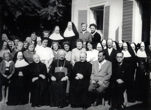 Tischler v družbi s škofom Gregorijem Rožmanom in prelatom Rudolfom Blümlom / Tischler in der Gesellschaft des Bischofs Gregorij Rožman und des Prälaten Rudolf Blüml.