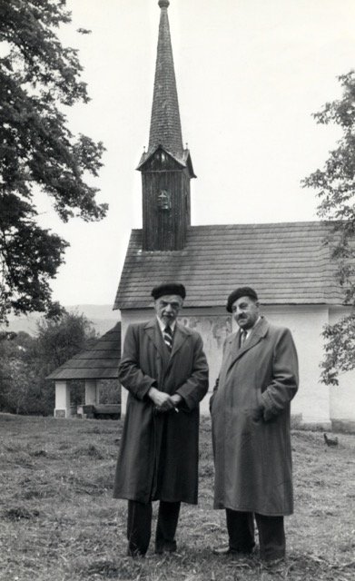 Joško Tischler in Fran Erjavec, v Parizu živeči strokovnjak za zgodovino koroških Slovencev / Joško Tischler und Fran Erjavec, in Paris lebender Experte für die Geschichte der Kärntner Slowenen (1954).