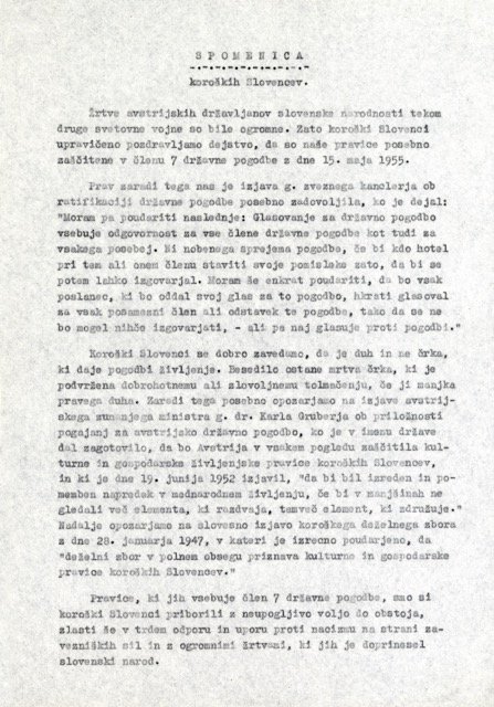 Spomenica koroških Slovencev z dne 11. oktobra 1955 / Memorandum der Kärntner Slowenen vom 11. Oktober 1955.