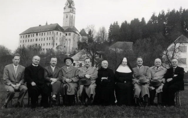 Tischler in Blüml z učitelji Kmetijske gospodarske šole v Tinjah / Tischler und Blüml mit den Lehrern der Landwirtschaftsschule in Tainach. (ADT/ZRC SAZU)