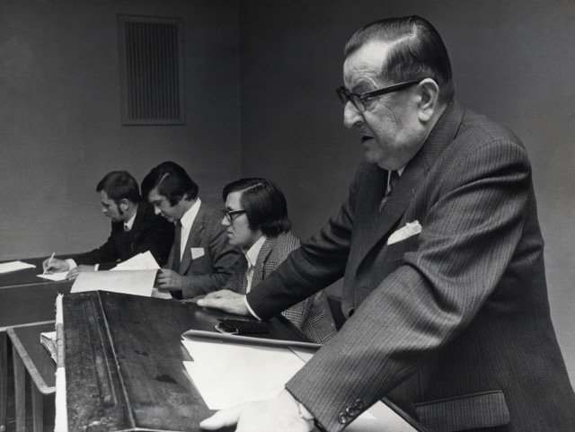 Joško Tischler za govorniškim odrom / Joško Tischler am Rednerpult. (ADT/ZRC SAZU)